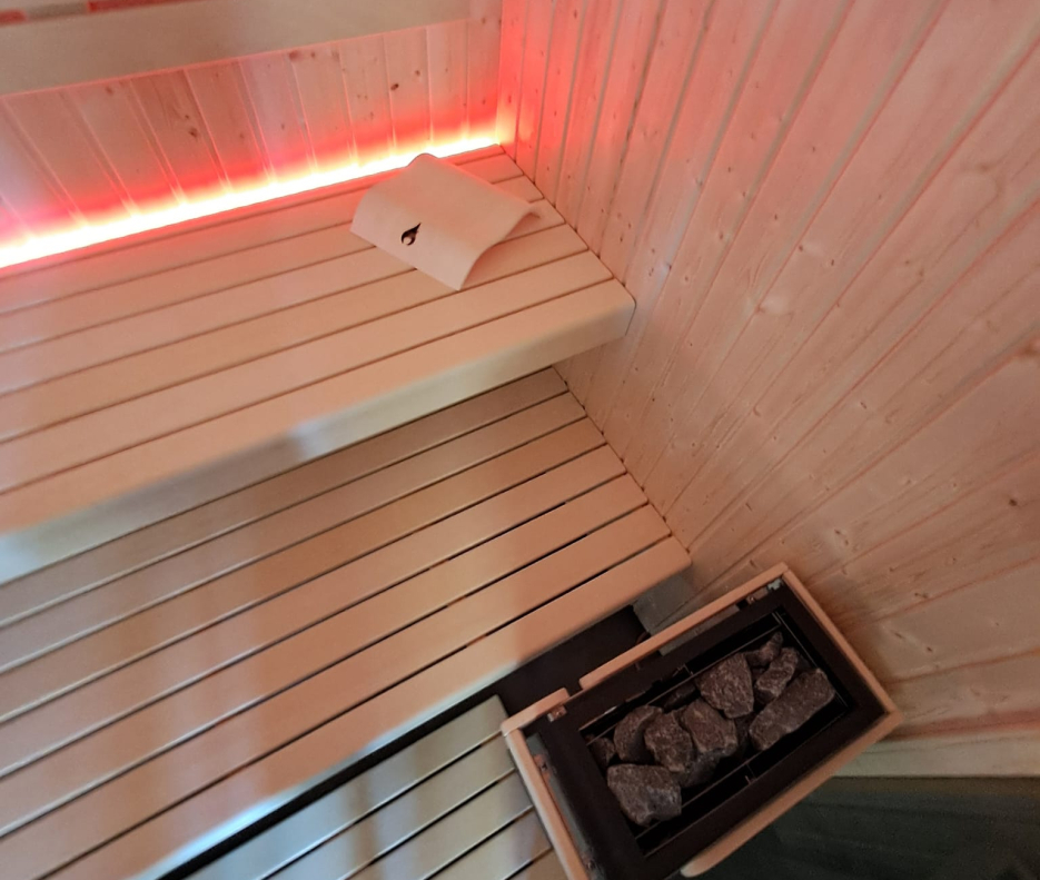 Základem interiéru je skandinávský smrk. Ne proto, že je „osvědčený“, ale protože funguje. Má klidnou kresbu, neodvádí pozornost a v teple reaguje přesně tak, jak od finské sauny očekáváte. Dřevo vytváří prostředí, které je příjemné na dotek i na pohled, bez zbytečných kontrastů nebo dekorativních přehánění. Interiérové provedení SILVER celý prostor lehce zklidňuje a dává mu současný výraz, aniž by potlačovalo charakter dřeva.